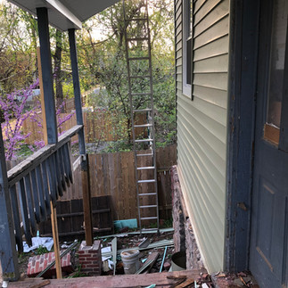 We inspected the back porch later and it looks as if the part that is still intact was the original porch. At some point, it was expanded to the full width of the house, but whoever did it didn't properly tie in to the house. Yikes!