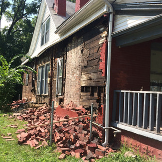 It wasn't without some drama and danger. During the removal of the bricks along the back of the house, part of the porch collapsed under the weight of the stacked bricks and one of the workers escaped falling six feet onto the brick pile below by diving through an open window.