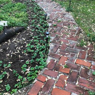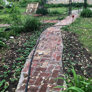 Above is a photo of the yard. I took it from our upper rear porch. All the rain has the grass (erm, weeds) growing fast, but in the images below you can probably see how I'm working on expanding plantings along the pathways. I keep it all within two feet of the pathway, and within arm's reach. I like the idea of being able to walk along every single pathway and reach a strawberry, basil, fennel, and more. I'll order 350-500 strawberry plants each year until I've accomplished my goal. I'll also work on propagating the strawberries I have that are established and sending out runners (a bunch of small pots with dirt works great - just stick the runner inside and wait for it to root - voila, new strawberry plant!) Obviously, that's a lot of strawberries. Far more than we can possibly eat. But that's what our guests, neighbors and friends are for! Back in Belton, we filled mixing bowls full of strawberries and gave them to our neighbors. It made everyone happy!