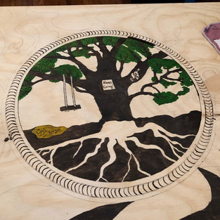 This project is full of symbolism. The tree of life represents the growth that each human undergoes in their life, blossoming from a tiny sapling to a strong tree with deep roots. As you can see, I reversed the stain underground, choosing to emphasize the earth instead of the roots. I wanted an element of yin/yang in the image, for there is dark and light in all of us.